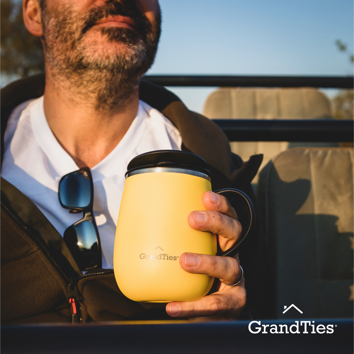 Sip smarter with GrandTies Insulated Coffee Mug. Stainless steel, spill-proof lid, and double-wall insulation keep your drinks hot or cold for hours—perfect for daily use or gifting.