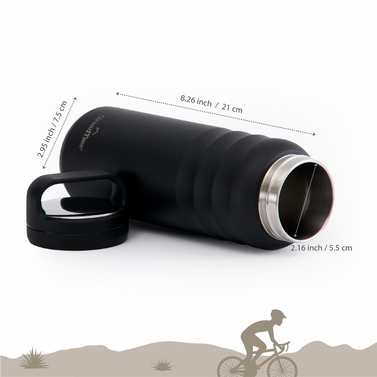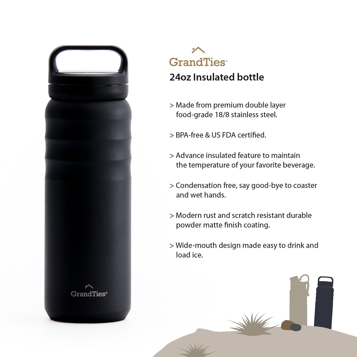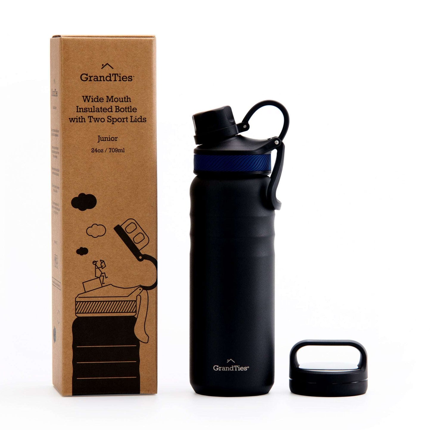 Insulated Travel Water Bottle with Two Handle Lids | 24oz/709ml - Midnight Black