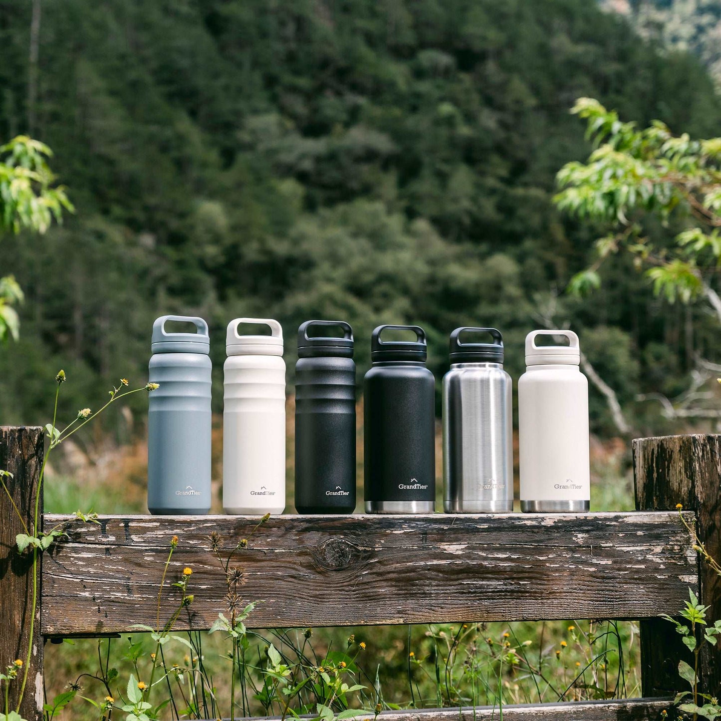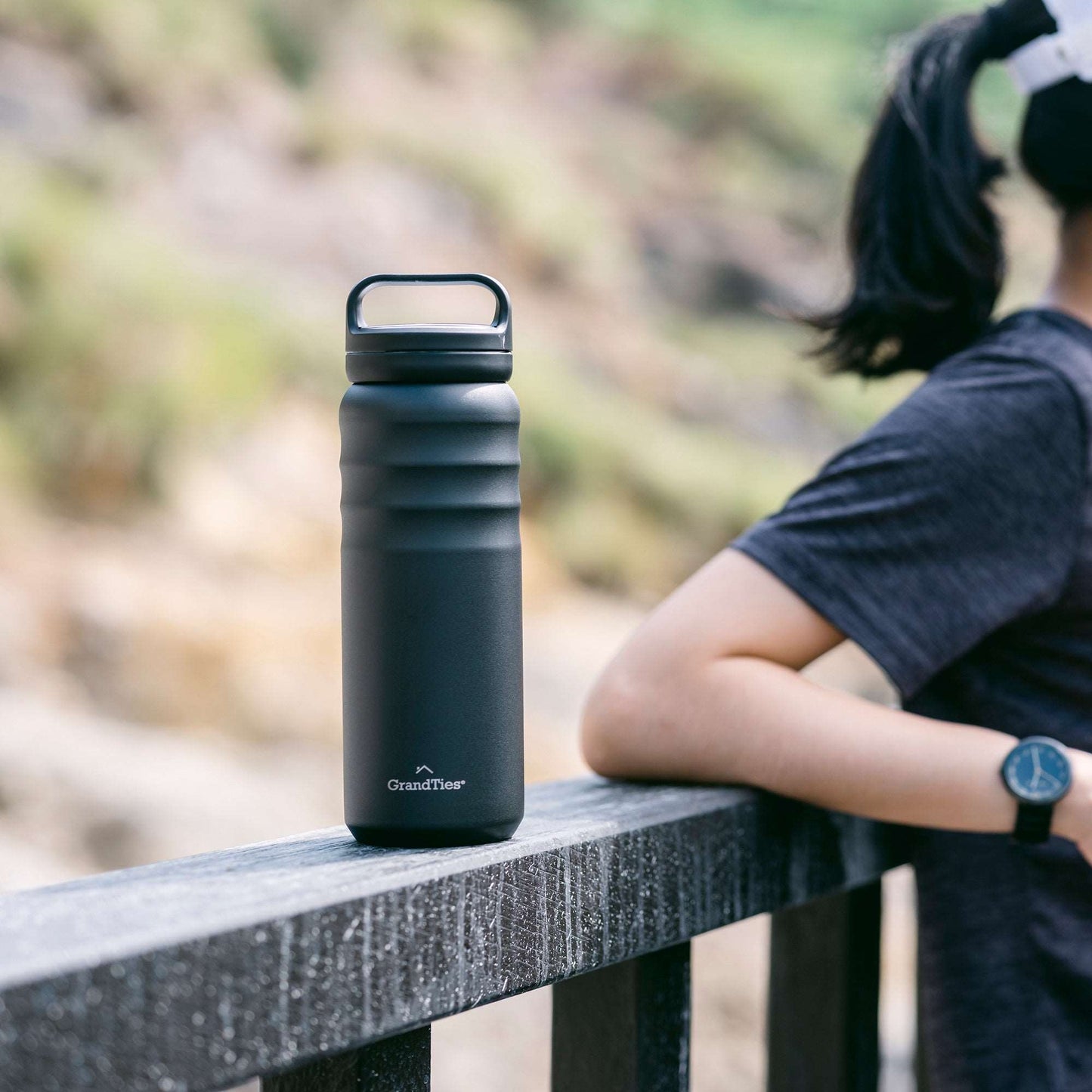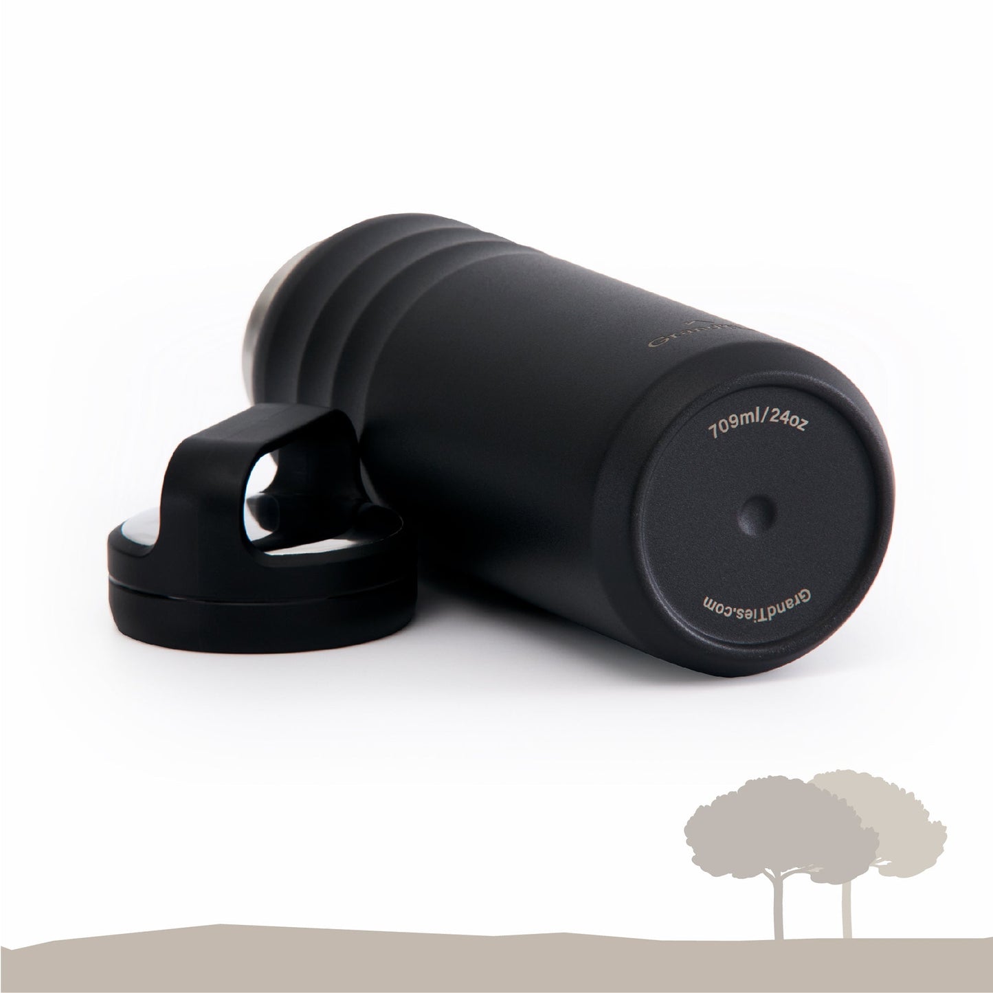 Insulated Travel Water Bottle with Two Handle Lids | 24oz/709ml - Midnight Black