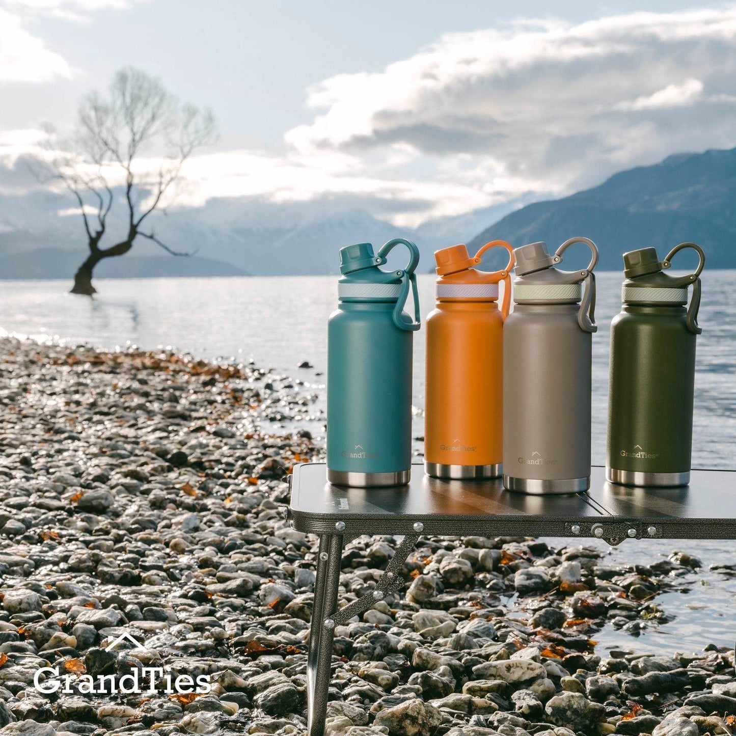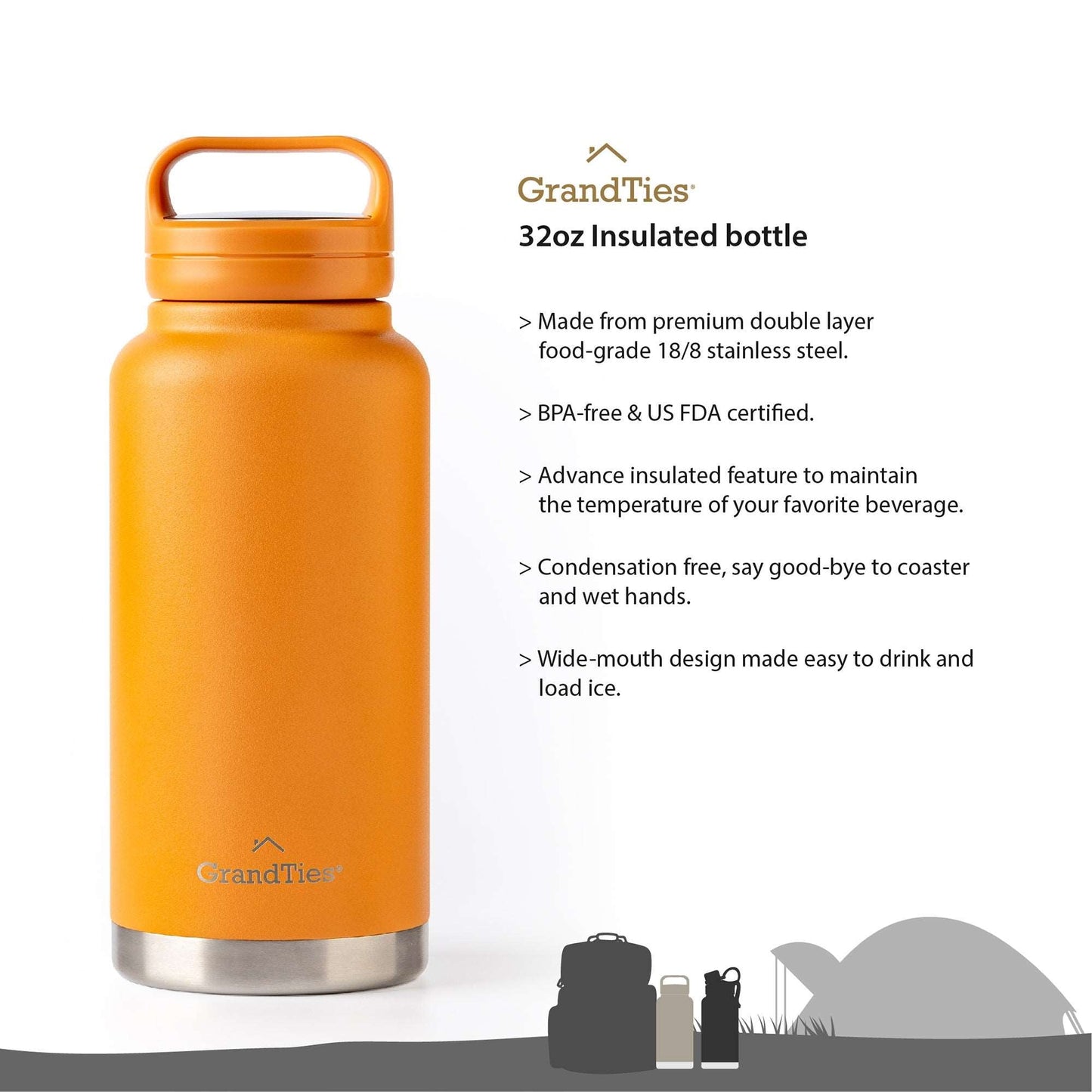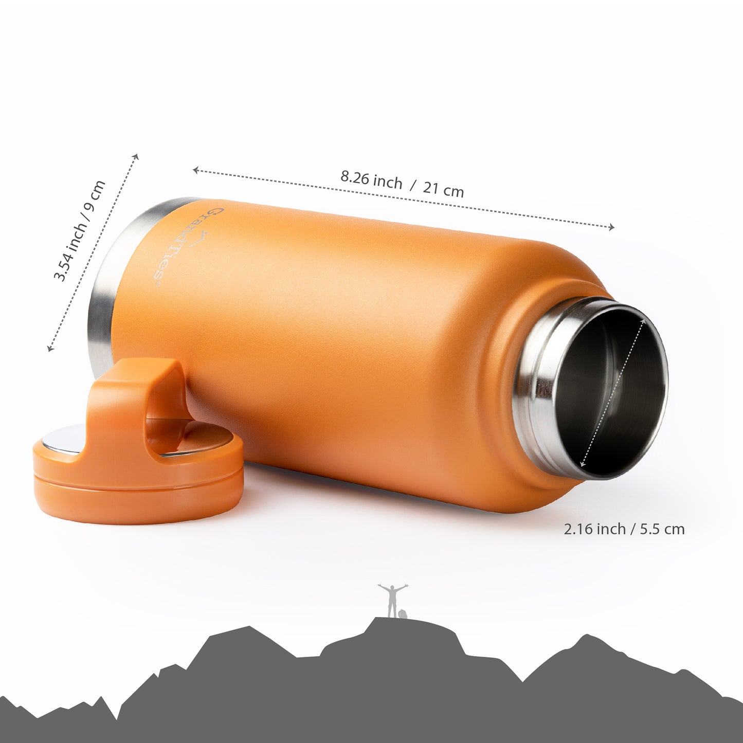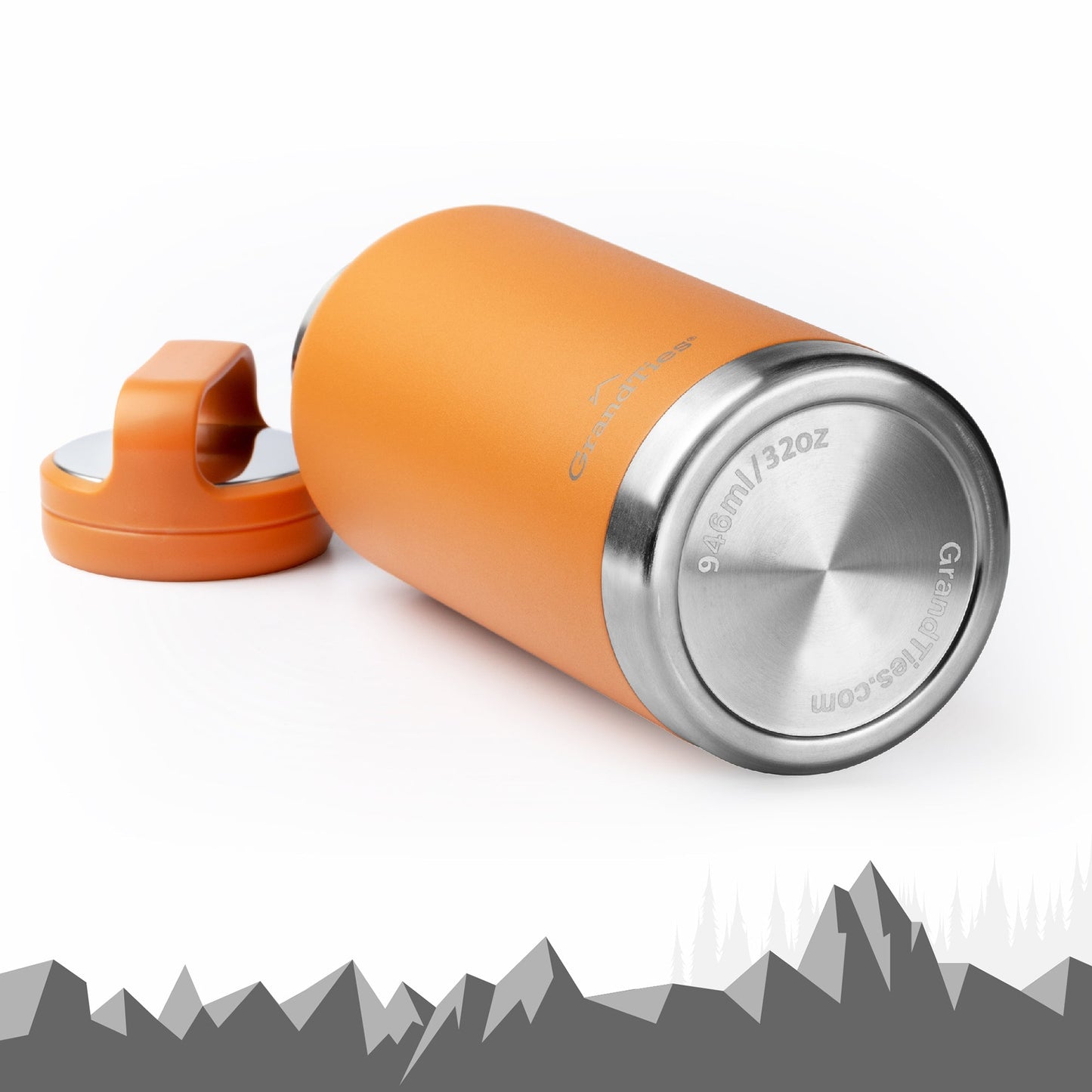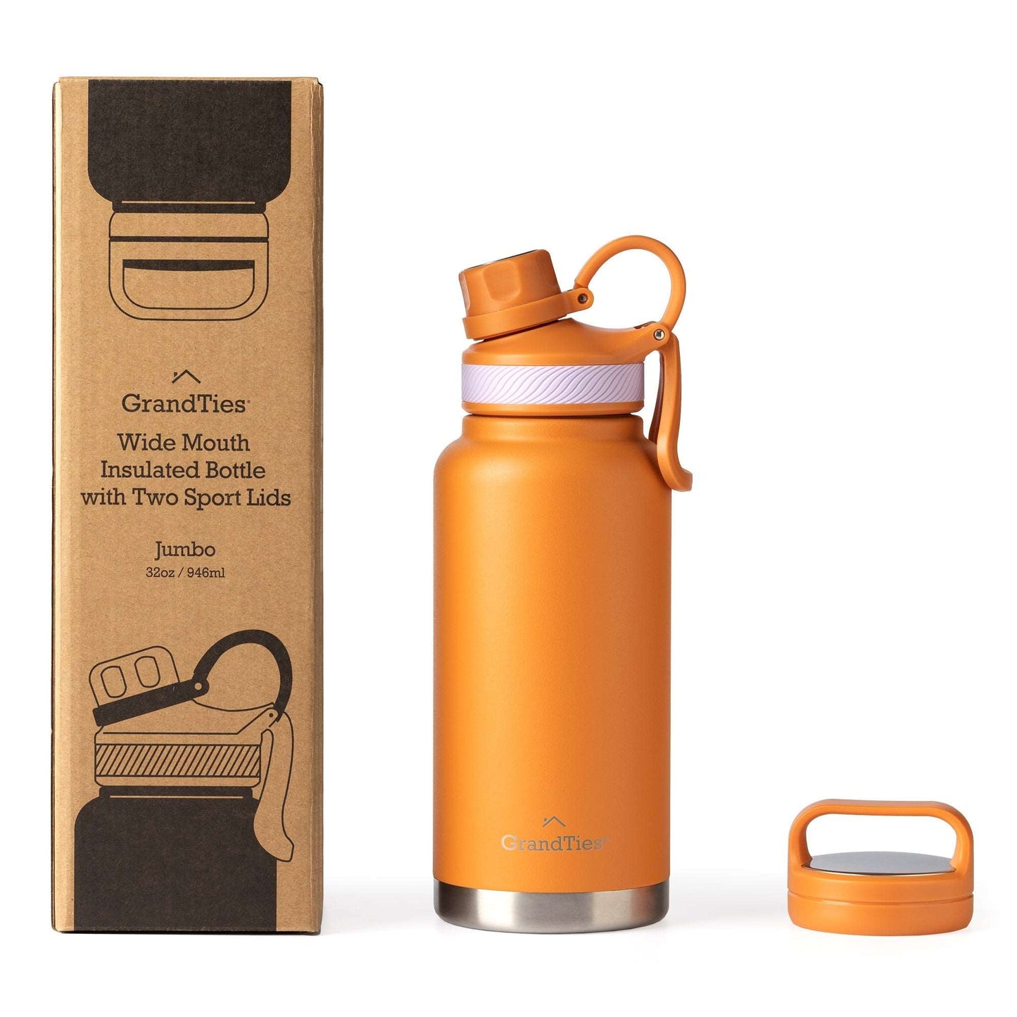 Insulated Travel Water Bottle with Two Handle Lids | 32oz/946ml - Carrot