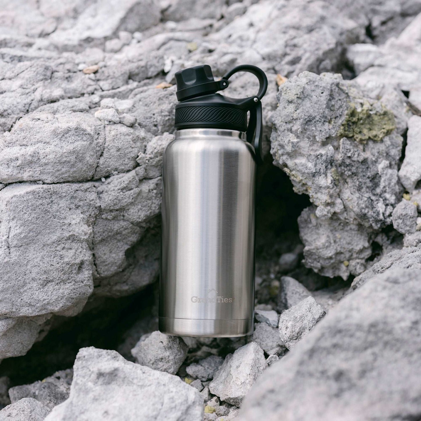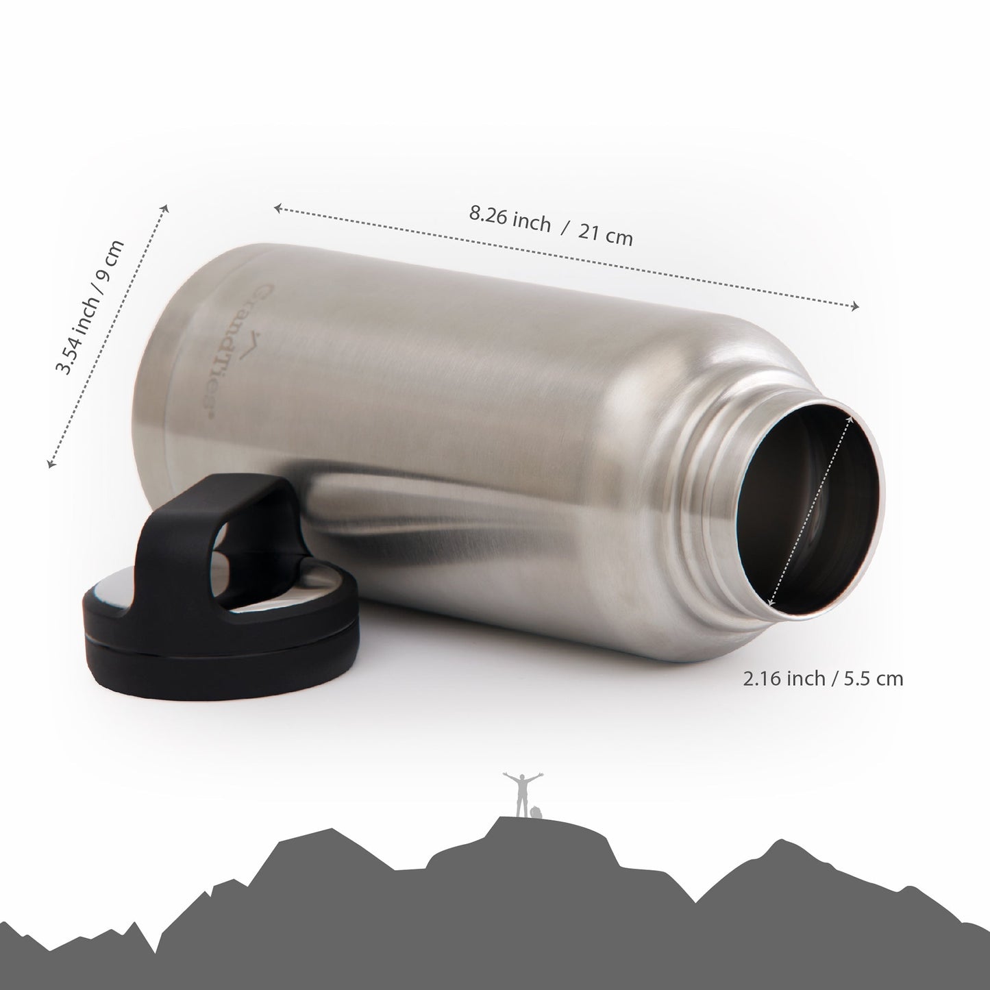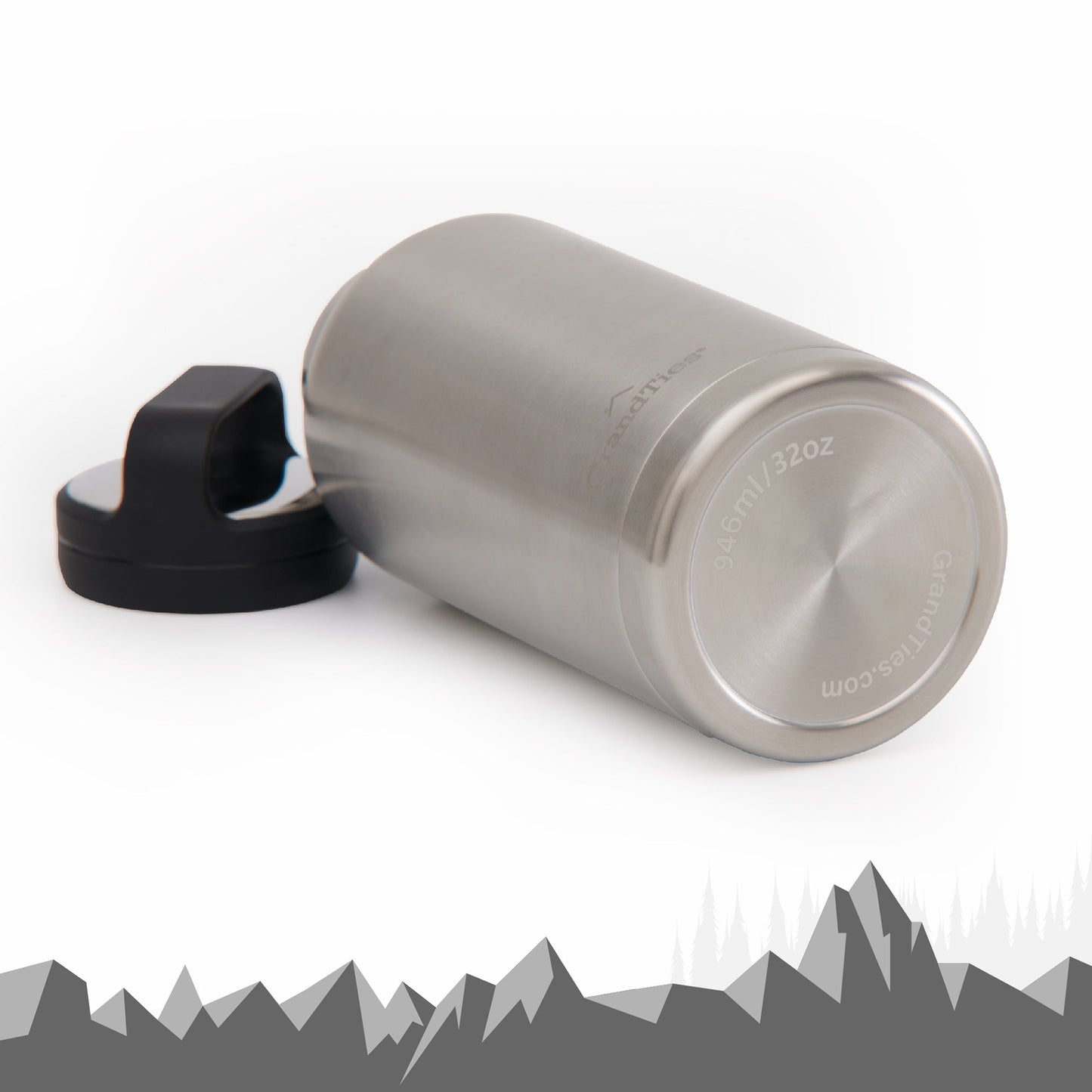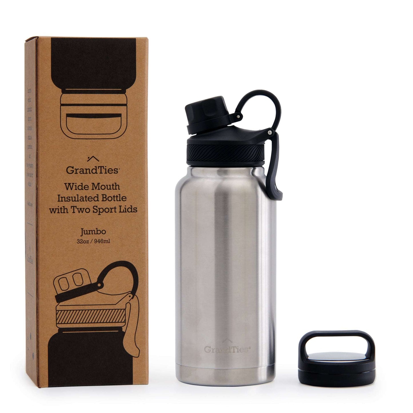 Insulated Travel Water Bottle with Two Handle Lids | 32oz/946ml- Classic Silver