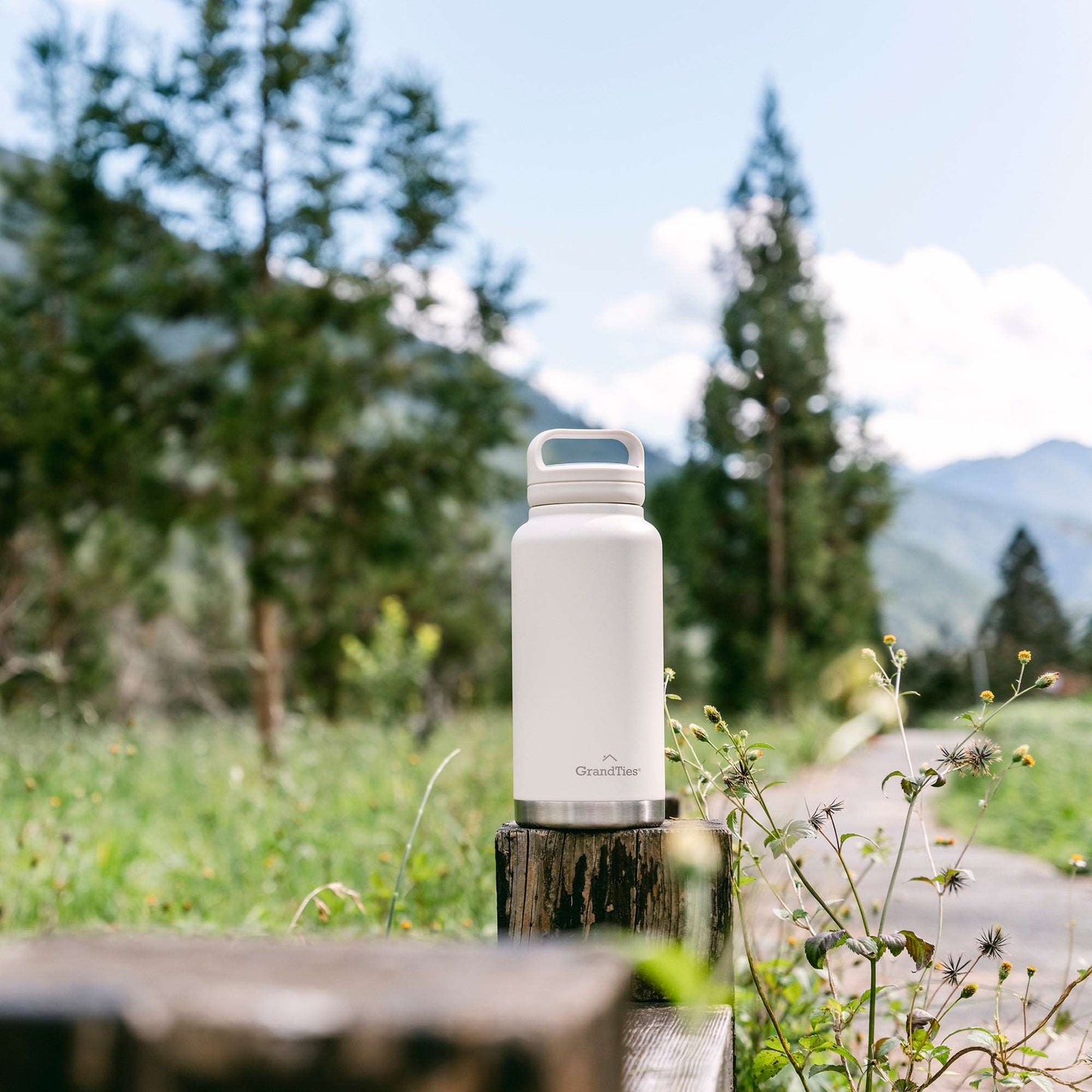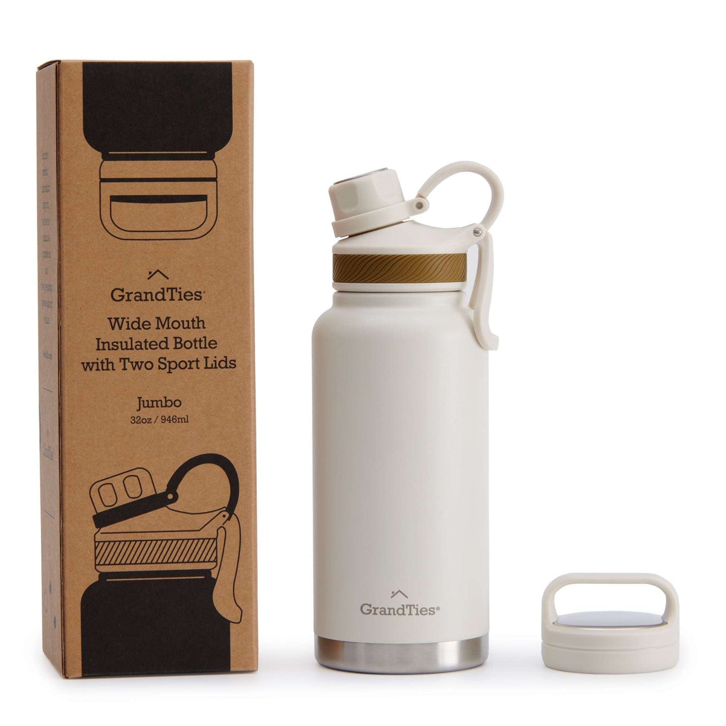 Insulated Travel Water Bottle with Two Handle Lids | 32oz/946ml - Ivory White
