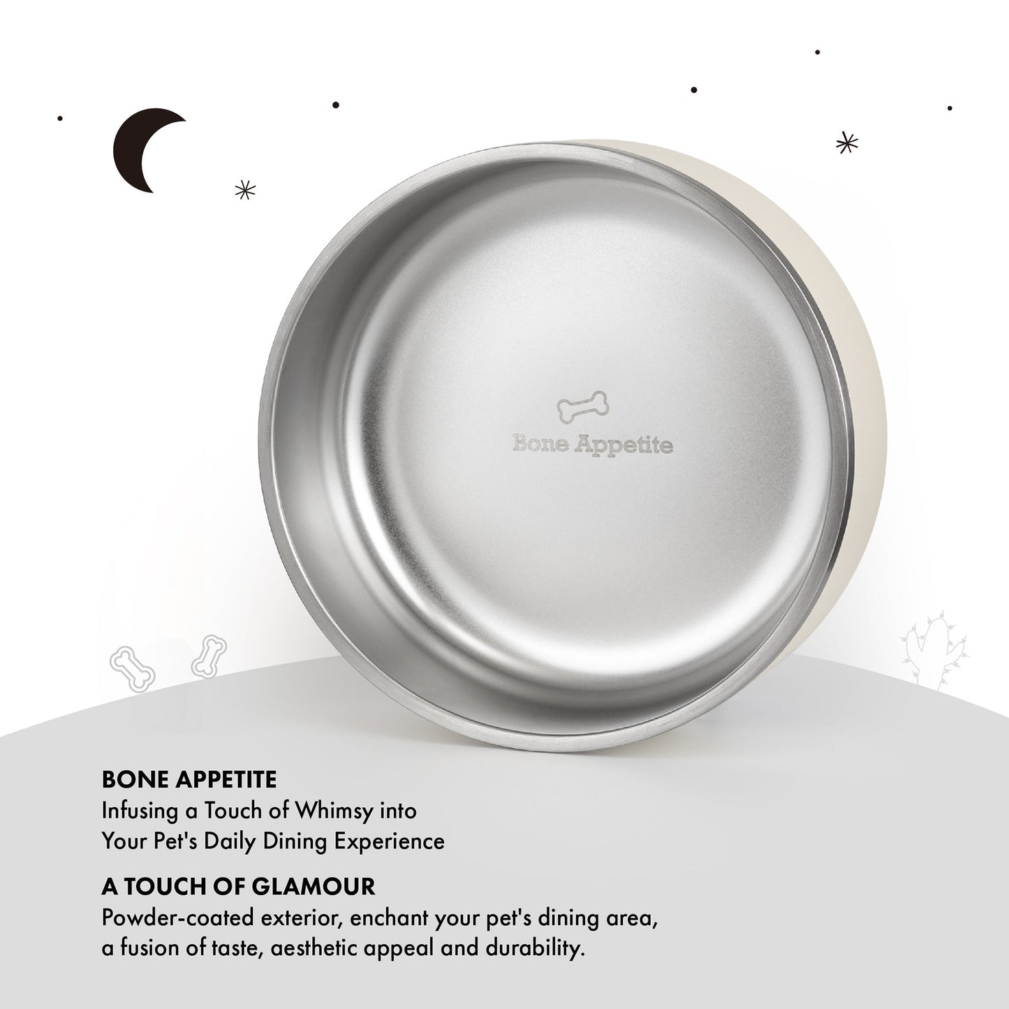 - Bone Appetite: laser engraved with “Bone Appetite”, infuse a touch of whimsy into your pet's daily dining experience. A gift of lasting companionship for your beloved dogs, puppy and cat. These modern dog bowls adorned with a range of colors to complement your decor.