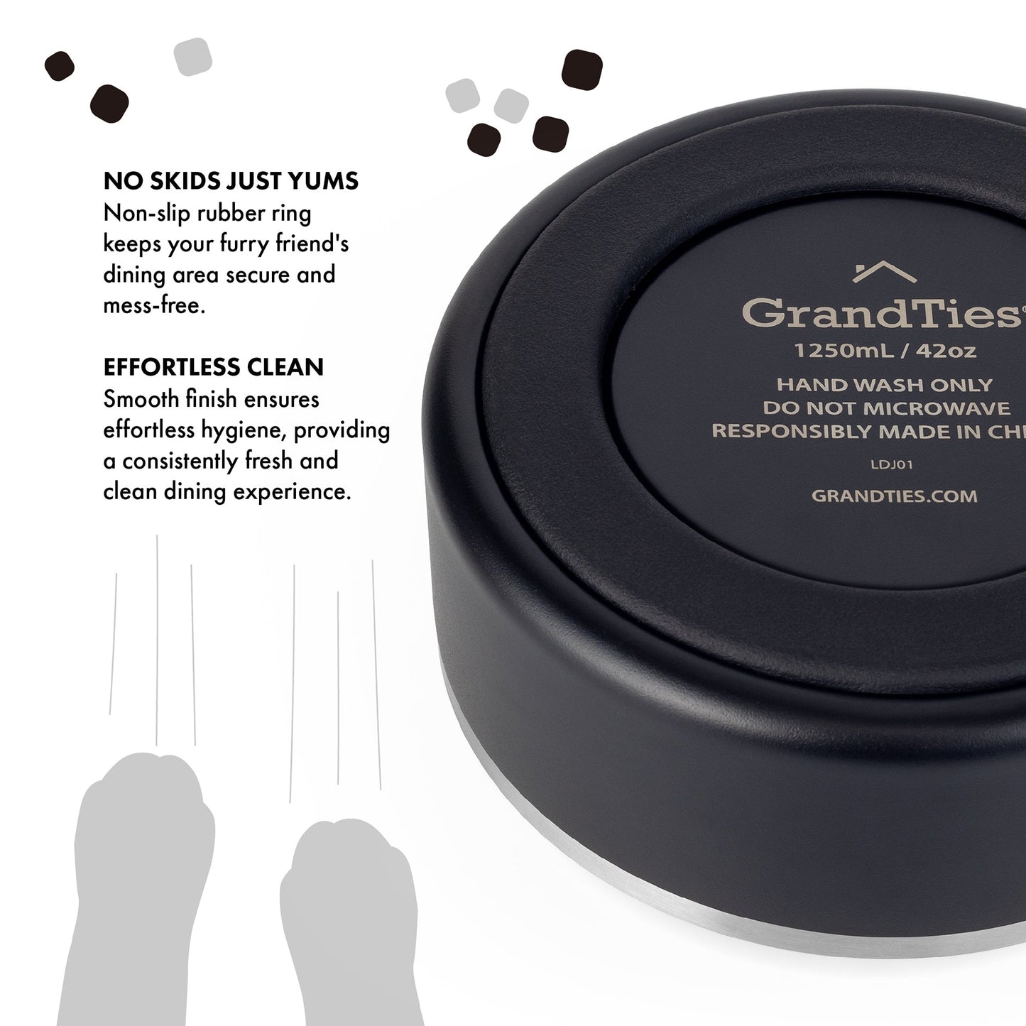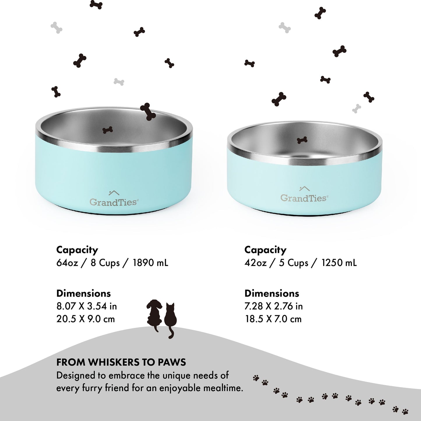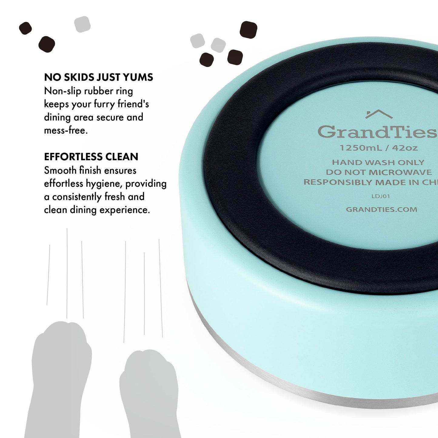 - Non-Slip Pet Bowls: stays put during mealtime, preventing spills and sliding, ensuring meals are enjoyed with peace and stability. No more chasing metal dog bowls around the kitchen – just serene, neater and mess-free dining.