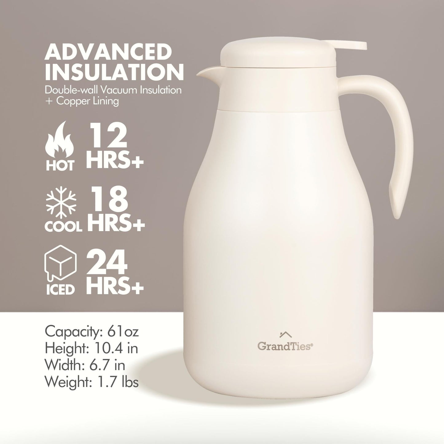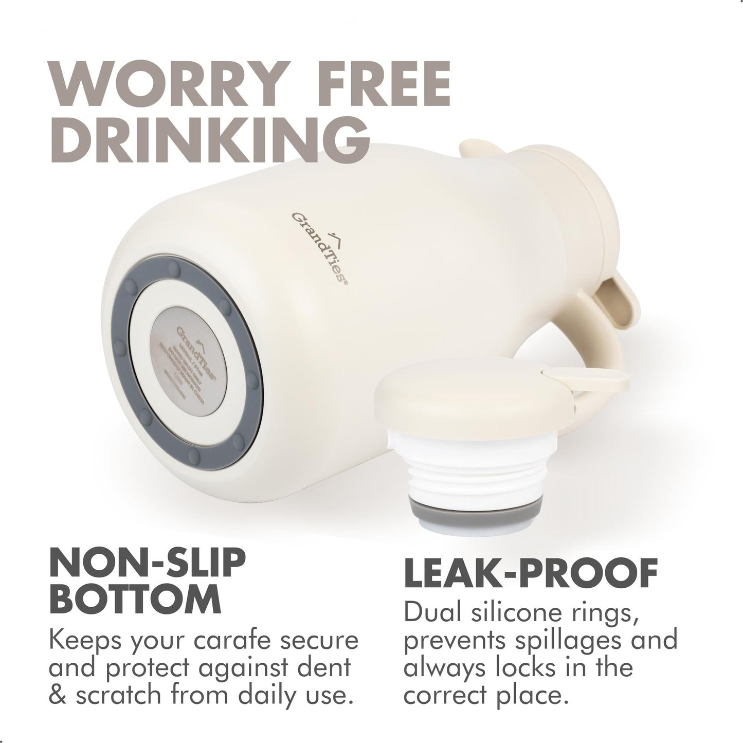 - Superior Heat & Cold Retention: GrandTies' stainless steel carafe keeps drinks hot for 12 hours and cold for 24 hours with vacuum insulation.