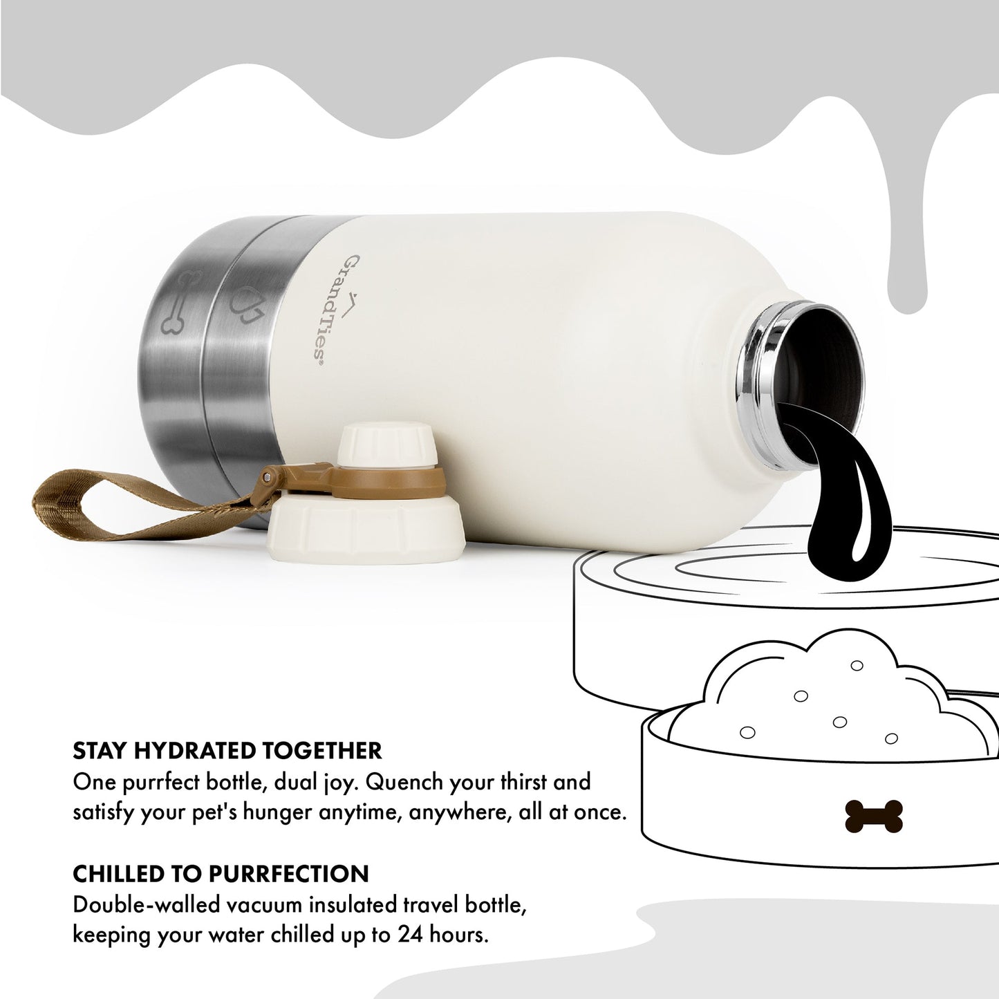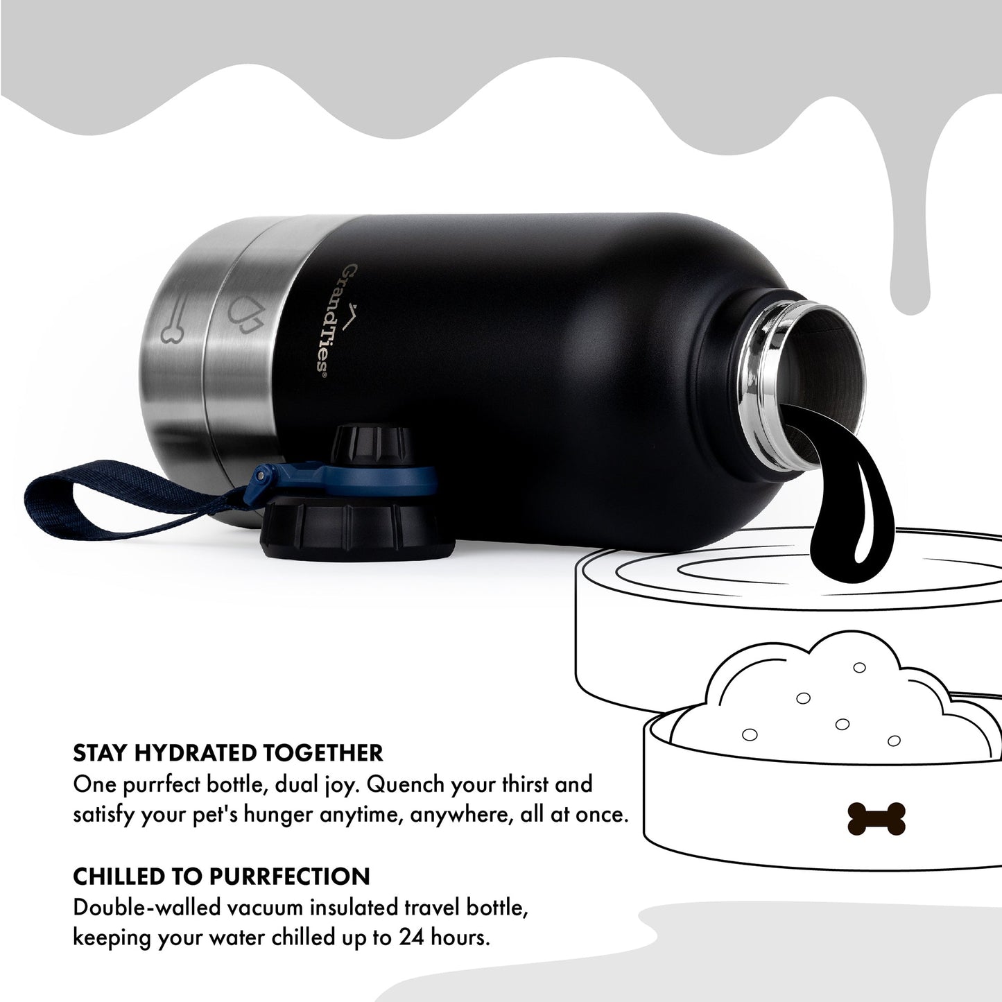 - All-Weather Hydration: This portable dog water bottle keeps water cold for 24 hrs and warm for 12 hrs. A must for dog travel and camping, ensuring your furry friend stays hydrated and happy.