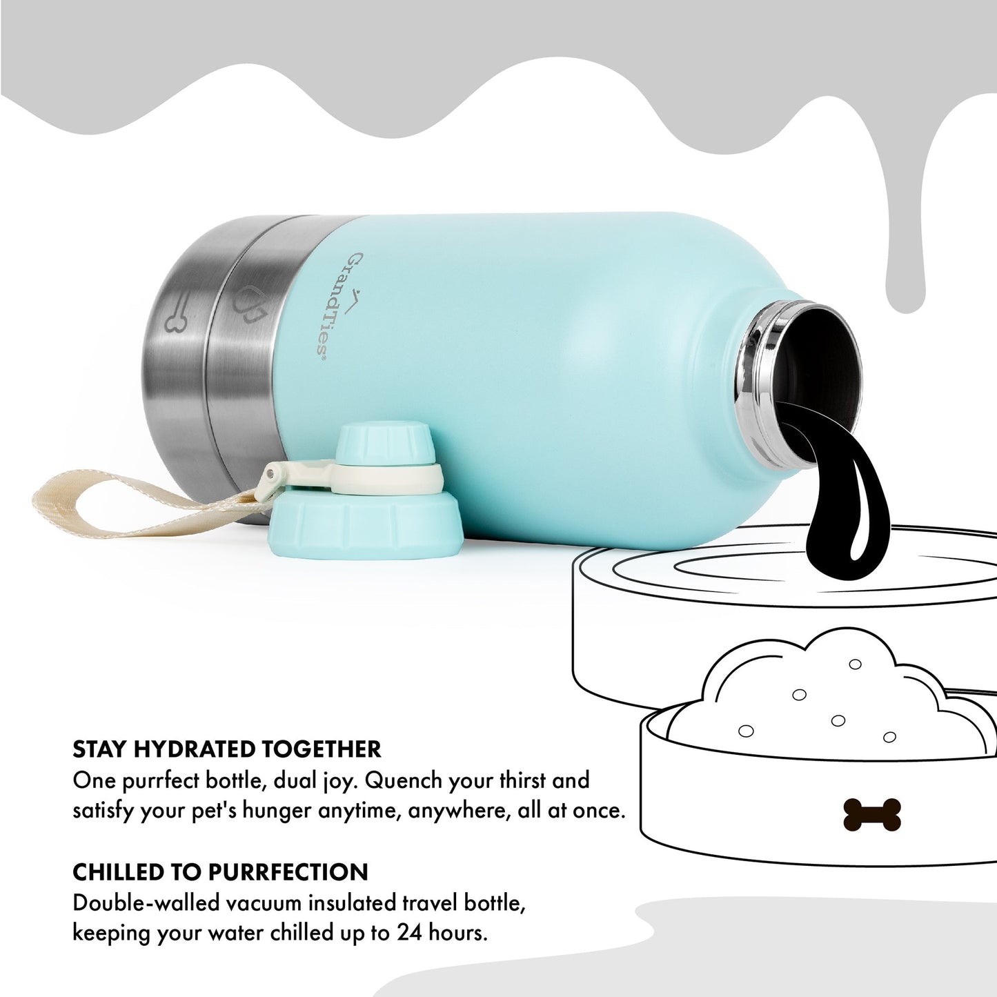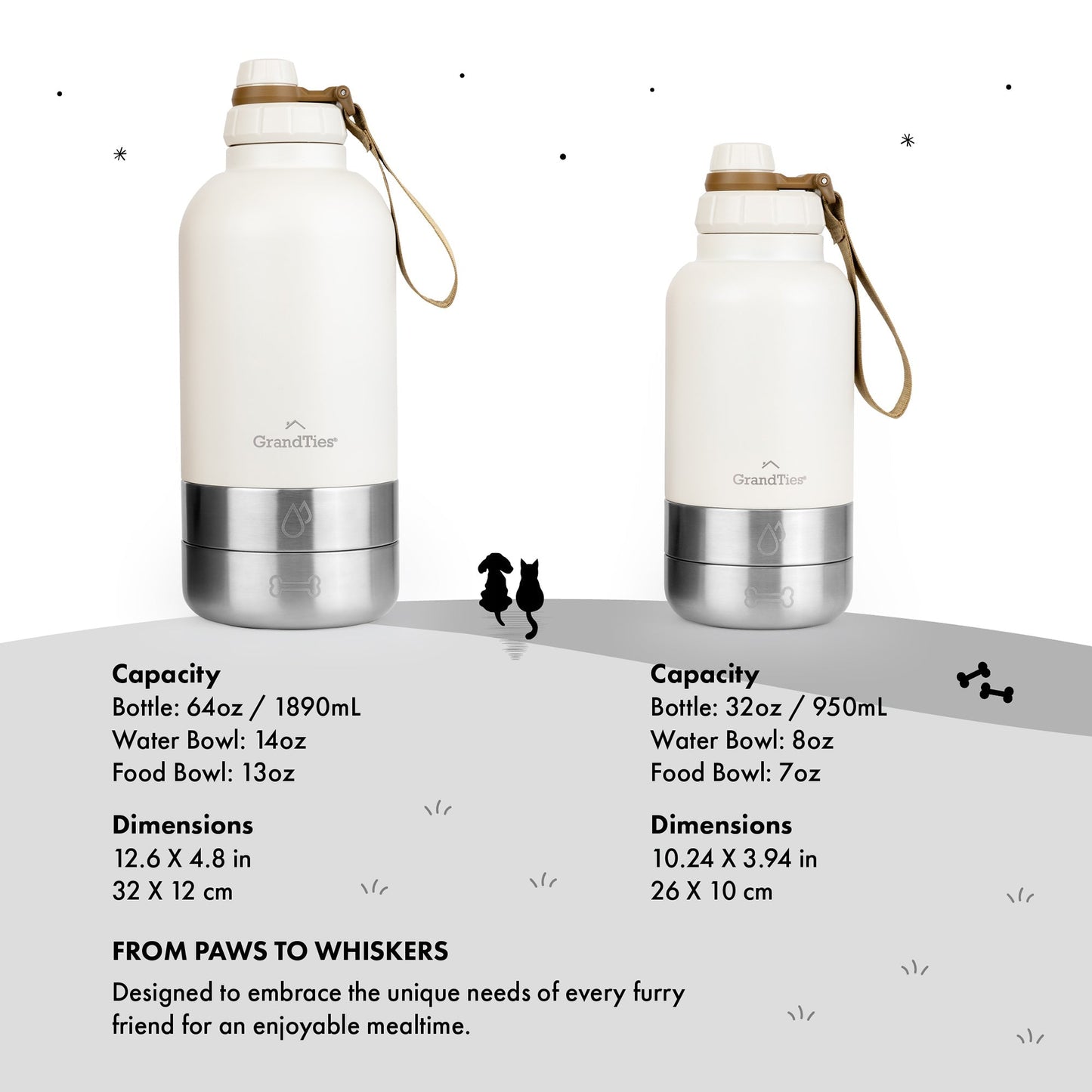 - Double-Duty Pet Bowls: GrandTies' dog water dispenser comes with 2 detachable bowls, serving water and food. Versatile and compact, a must-have for pet walks and trips.