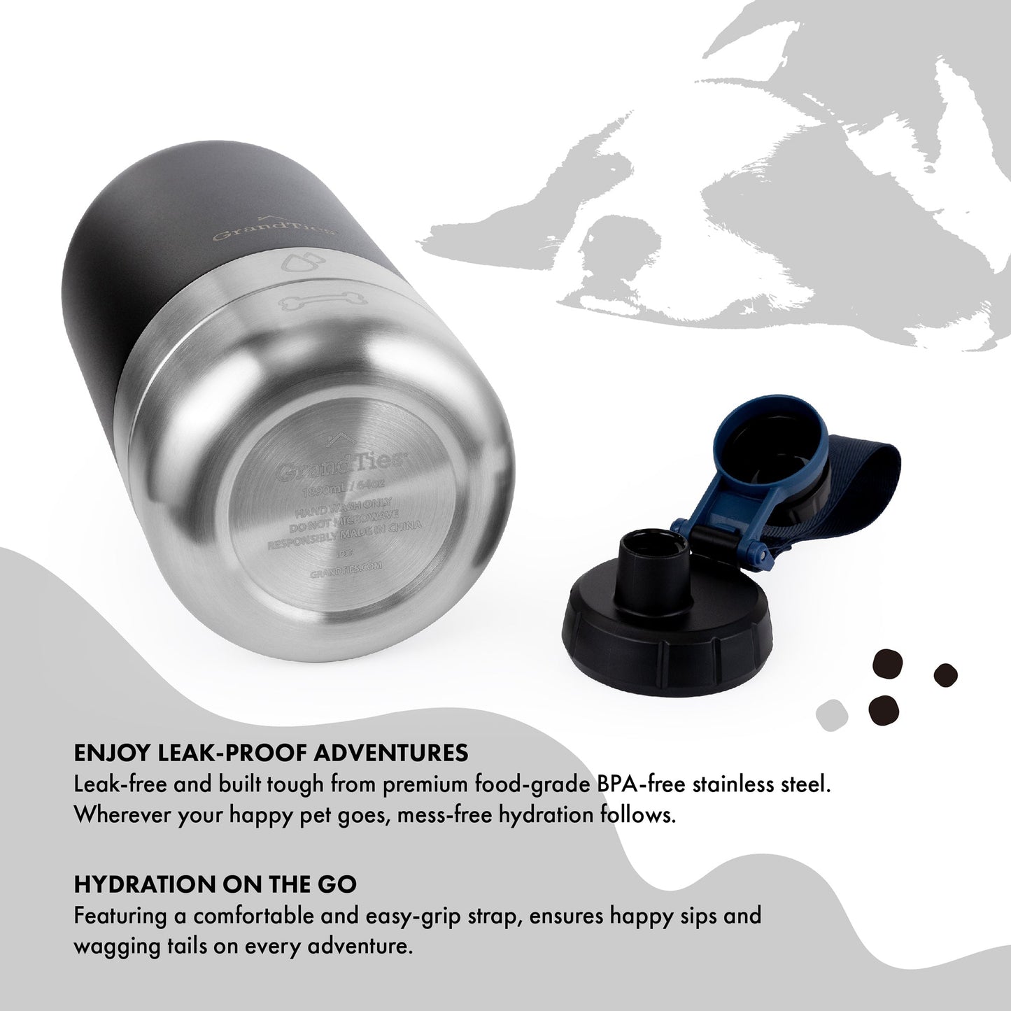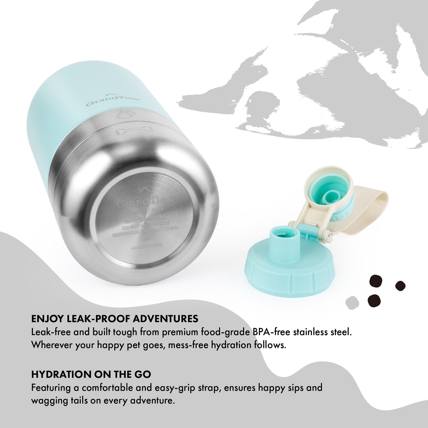 - Premium Quality, No Leaks: Crafted from BPA-free stainless steel for your pet's safety. Say goodbye to messy spills with the leak-proof design, keeping your gear dry.