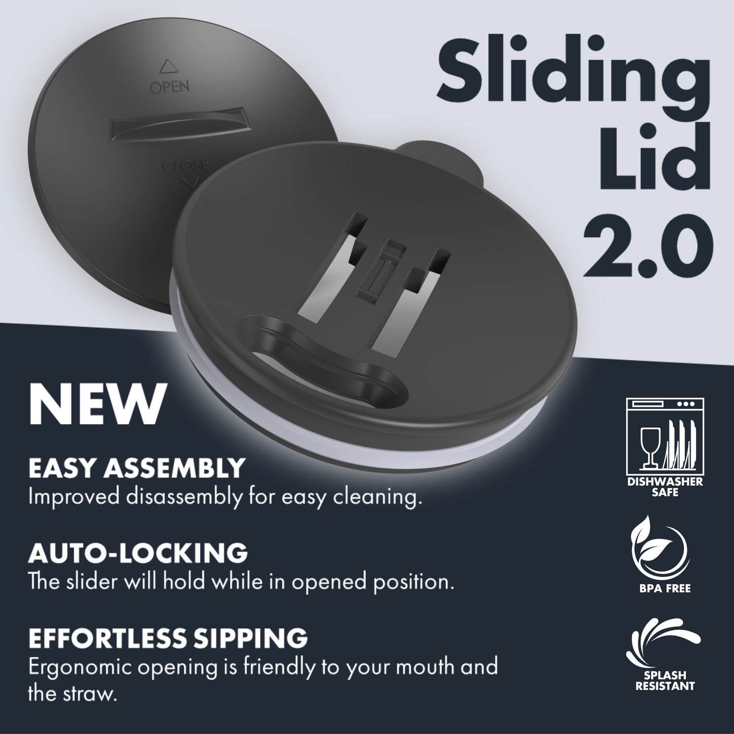 - Special Lid Desigh: The unique sliding lid easily opens or closes with one finger. This silicone gasket spill-proof sliding lid seals off completely, making it leak-proof for easy transportation and helps maintain the temperature in the mug. Made from BPA, BPS, BPF, Toxic-free PBT.
